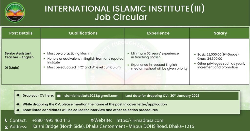 JOB CIRCULAR: SENIOR ASSISTANT TEACHER ENGLISH